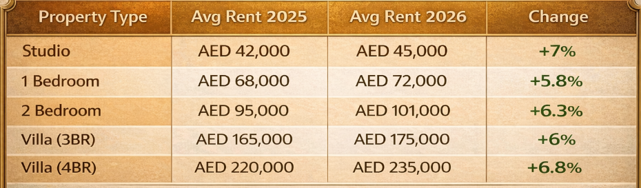 Rents are rising because of population growth, limited villa supply, and strong demand for modern apartments.